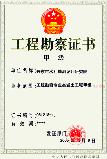 建院以來,該院始終堅(jiān)持“質(zhì)量第一、信譽(yù)第一、用戶第一”的原則,不斷地發(fā)展和完善。先后完成了丹東市重點(diǎn)工程項(xiàng)目《三灣水利樞紐及輸水工程項(xiàng)目建議書》、《愛河流域規(guī)劃報(bào)告》、《中朝界河鴨綠江干流(遼寧段)綜合整治規(guī)劃》、《羅圈背水庫除險(xiǎn)加固》、《東港大型灌區(qū)續(xù)建配套工程》、《金山熱電廠引取水工程可行性研究報(bào)告》、《東北地區(qū)防洪與國土規(guī)劃》、《中朝界河鴨綠江干流丹東產(chǎn)業(yè)園區(qū)防洪及國土保護(hù)規(guī)劃報(bào)告》及《鴨綠江干流防洪護(hù)岸工程的可研、初設(shè)及技術(shù)設(shè)計(jì)》等工程的勘測(cè)、規(guī)劃、設(shè)計(jì)共計(jì)500多項(xiàng),完成工程總投資約215億元。其中:《龍鳳電站工程》2000年榮獲丹東市優(yōu)秀勘察設(shè)計(jì)一等獎(jiǎng)、《農(nóng)科院灌溉工程》2001年榮獲丹東市優(yōu)秀設(shè)計(jì)一等獎(jiǎng)、《丹東市人民檢察院綜合技術(shù)樓》獲2007年度遼寧省優(yōu)秀工程勘察設(shè)計(jì)獎(jiǎng)工程勘察類三等獎(jiǎng)、《羅圈背水庫除險(xiǎn)加固工程》 獲2009年度遼寧省優(yōu)秀工程勘察設(shè)計(jì)獎(jiǎng)水利工程類二等獎(jiǎng)、《丹東東發(fā)(集團(tuán))有限公司新建燃?xì)獗砉I(yè)園區(qū)建筑物巖土工程勘察》獲2009年度遼寧省優(yōu)秀工程勘察設(shè)計(jì)獎(jiǎng)工程勘察類三等獎(jiǎng)、《二潮溝-浪頭防洪護(hù)岸工程》獲2009年度遼寧省優(yōu)秀工程勘察設(shè)計(jì)獎(jiǎng)水利工程類三等獎(jiǎng)、《丹東市鴨綠江防洪墻加固工程》獲2010年度丹東市優(yōu)秀工程勘察設(shè)計(jì)二等獎(jiǎng),《何家崗水庫除險(xiǎn)加固工程勘察》獲2010年度丹東市優(yōu)秀工程勘察設(shè)計(jì)二等獎(jiǎng),為丹東地區(qū)水利事業(yè)發(fā)展做出了突出貢獻(xiàn)。