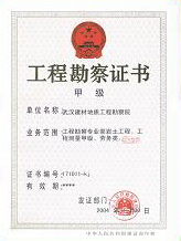 我院現持有建設部重新頒發的甲級證書,證書編號:171011-kj 。持有武漢市物價局新頒發的服務價格收費許可證書,證書編號01-0020057。在武漢市辦理了《城市勘察測繪許可證》、工商、稅務登記,具有從事工程勘察、巖土工程施工、水利水電工程地質及巖土工程勘察以及地質災害防治工程勘查和評價、水文地質勘察和測繪等項目的法人資格。