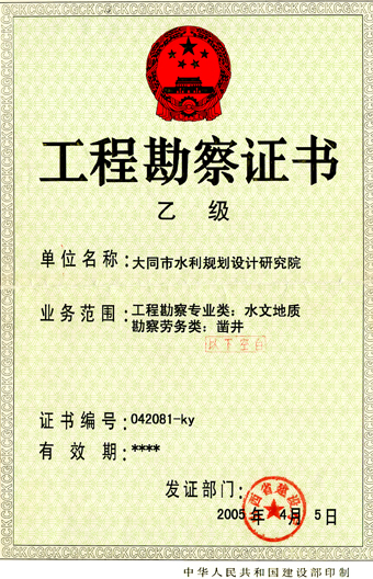 本單位的宗旨是:為中、小型水利建設提供勘察設計咨詢服務。業務范圍包括:設計乙級:(灌溉排澇)。丙級:(水庫樞紐、河道整治)。勘察乙級:工程勘察專業類:水文地質。勘察勞務類:鑿井。
