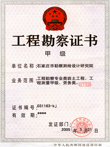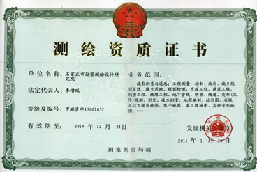 石家莊市勘察測繪設計研究院(簡稱石家莊市勘測院)隸屬石家莊市城鄉規劃局,是石家莊市唯一國家甲級測繪、甲級勘察的雙甲級資質單位,2004年通過ISO9000質量管理體系認證,并率先通過了職業健康安全管理體系、環境管理體系認證。