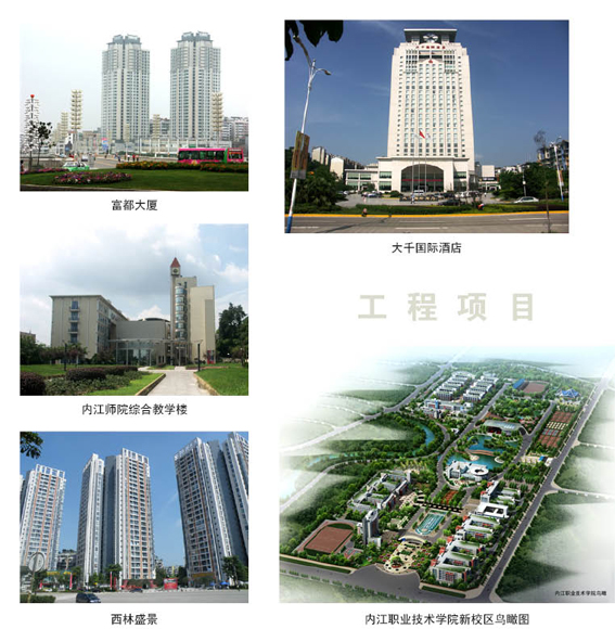該院立足內江,面向全國,積極對外開拓,分別在成都、廣元、資陽設立了分院,并承攬了重慶、貴州、西藏、樂山、宜賓、簡陽、瀘洲等地一大批勘察設計業務。一批有影響的建筑物相繼建成。如《西藏昌都洛隆中學》、《西藏昌都地區公安處一級指揮中心》、《成都銀杏酒店管理學院》、《內江市福都廣場》、《內江市第六中學》、《內江大千國際酒店》、《內江職業技術學院》等均受到社會各界好評。