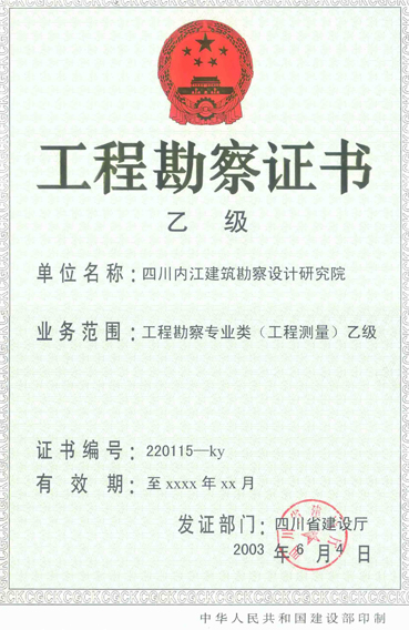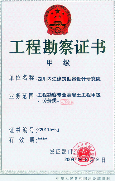 四川內江建筑勘察設計研究院創建于1980年6月。是一所持有國家建筑設計甲級、工程勘察甲級、工程咨詢甲級、工程測量乙級資質、并具有涉外經營權、通過IS09001:2008質量認證的綜合型勘察設計單位。
