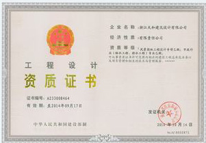 浙江天和建筑設計有限公司是由湖州市建筑設計研究院于2005年末轉企改制成立的科技型企業,擁有國家住房與城鄉建設部頒發的建筑工程甲級設計資質和浙江省住房與城鄉建設廳頒發的城市規劃編制、巖土工程設計、市政專業設計、風景園林專項設計、施工圖審查、工程監理等多項資質。