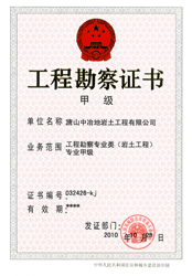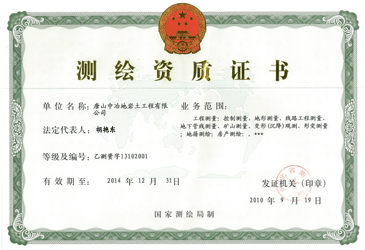 公司現有資質:工程勘察專業類巖土工程甲級;勘察勞務類(巖土工程治理、工程鉆探、鑿井)專項資質;測繪乙級資質。取得了三標一體認證。