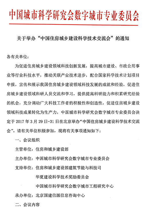 關于舉辦“中國住房城鄉建設科學技術交流會”的通知